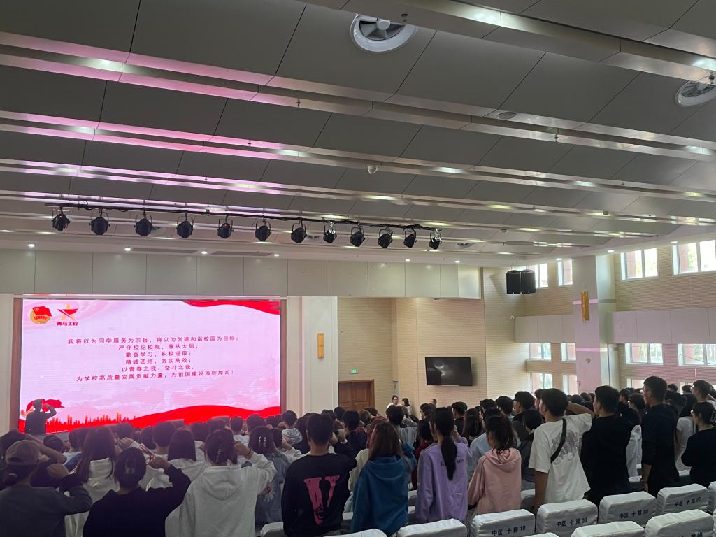 10月17日,学校举行2024-2025学年第一学期“青马工程”暨学生骨干培训班开班仪式,本期400余名青马学员参会,开班仪式由团委书记刁宁主持。