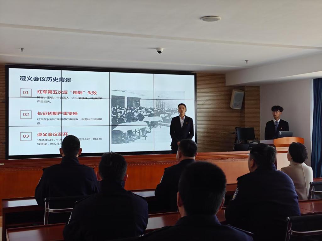 活动伊始,宣讲团成员围绕遵义会议的历史背景、重要决策以及深远意义,进行了深入且生动的阐述。通过详实的史料、鲜活的故事,再现了那段惊心动魄的革命岁月,与民警们一同感受到遵义会议所蕴含的坚定信念、实事求是、独立自主、民主团结的精神内涵。