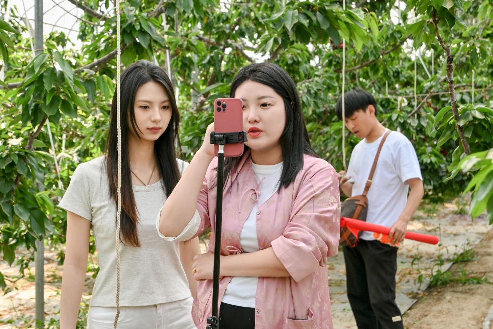 活动现场,埠口村樱桃基地内千亩樱桃硕果盈枝,丰收景象令人振奋。电商学院师生走进樱桃棚,搭建临时直播间,以短视频、直播等形式展现樱桃生长环境、采摘过程,向全网展示樱桃外观品质,并通过试吃环节直观呈现口感。网友互动热烈,咨询订单不断,直播间人气持续攀升。