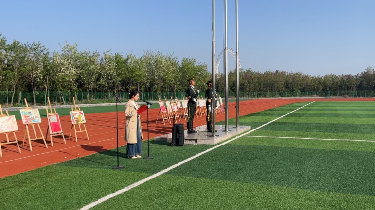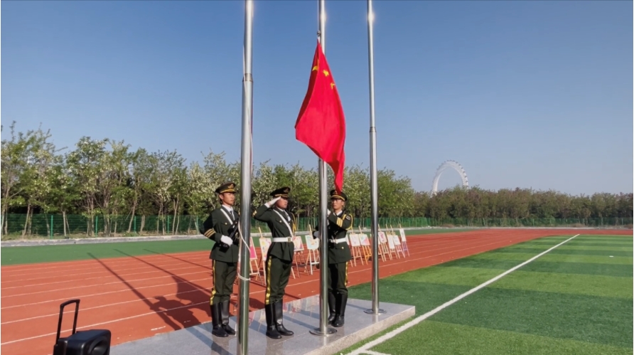 7时30分,校国旗护卫队迈着铿锵步伐护送国旗入场。伴随着庄严的《义勇军进行曲》,五星红旗冉冉升起,全体师生肃立行注目礼。教师代表单艳超老师以“让青春在奋斗中绽放”为题发表演讲,通过回顾五四先驱的爱国壮举,勉励青年学子“立大志、明大德、成大才、担大任”。学生代表李蕙晴同学结合长征先辈经历,发出“用脚步丈量祖国大地,用行动践行青春誓言”的倡议。随后,1300名青年师生庄严宣誓,铿锵誓言响彻云霄,展现出新时代青年的责任担当。