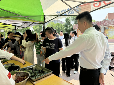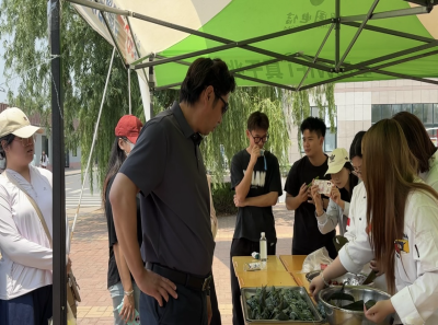 活动现场精心设置两大环节。趣味答题区人头攒动,同学们围绕端午起源、习俗与诗词知识踊跃竞答,答对者喜获粽子、香囊或五彩绳等节日礼品,在轻松互动中深化了对传统文化的认知。包粽子教学区同样气氛热烈,烹饪工艺与营养专业学生与志愿者悉心示范折叶、填米、放馅、捆扎等技巧,同学们互帮互助,亲手包制的粽子形状不一却情谊满满,欢声笑语不断。