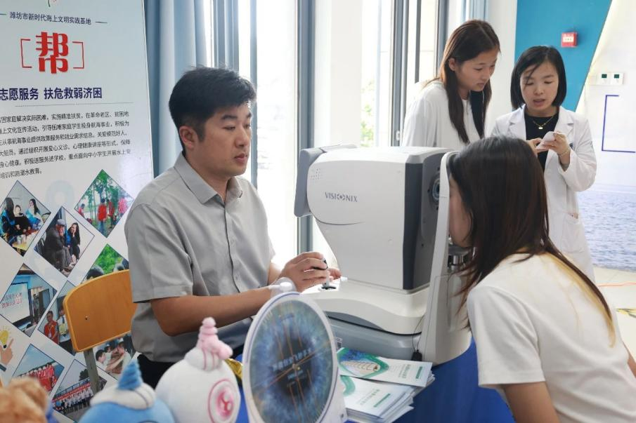 活动中,潍坊眼科医院的医护团队携带专业设备,为同学们提供了包括视力检查、电脑验光、裂隙灯检查等多项义诊服务。医护人员耐心细致,针对发现的问题给予了个性化的用眼建议和诊疗指导,进一步提升了学生们对眼部健康重要性的认识。