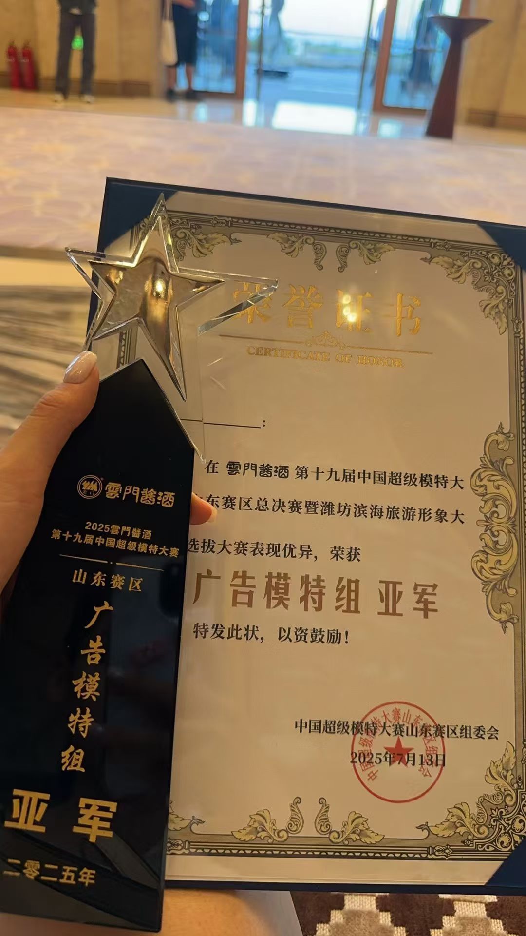 近日,学校航空学院2023级空中乘务专业学生王佳琪在时尚领域连续取得突破性成就。她先后在第十九届中国超级模特大赛山东赛区总决赛暨潍坊滨海旅游形象大使选拔中脱颖而出,作为滨海区唯一代表成功突围;随后又在济南时装周斩获“十佳模特”称号。