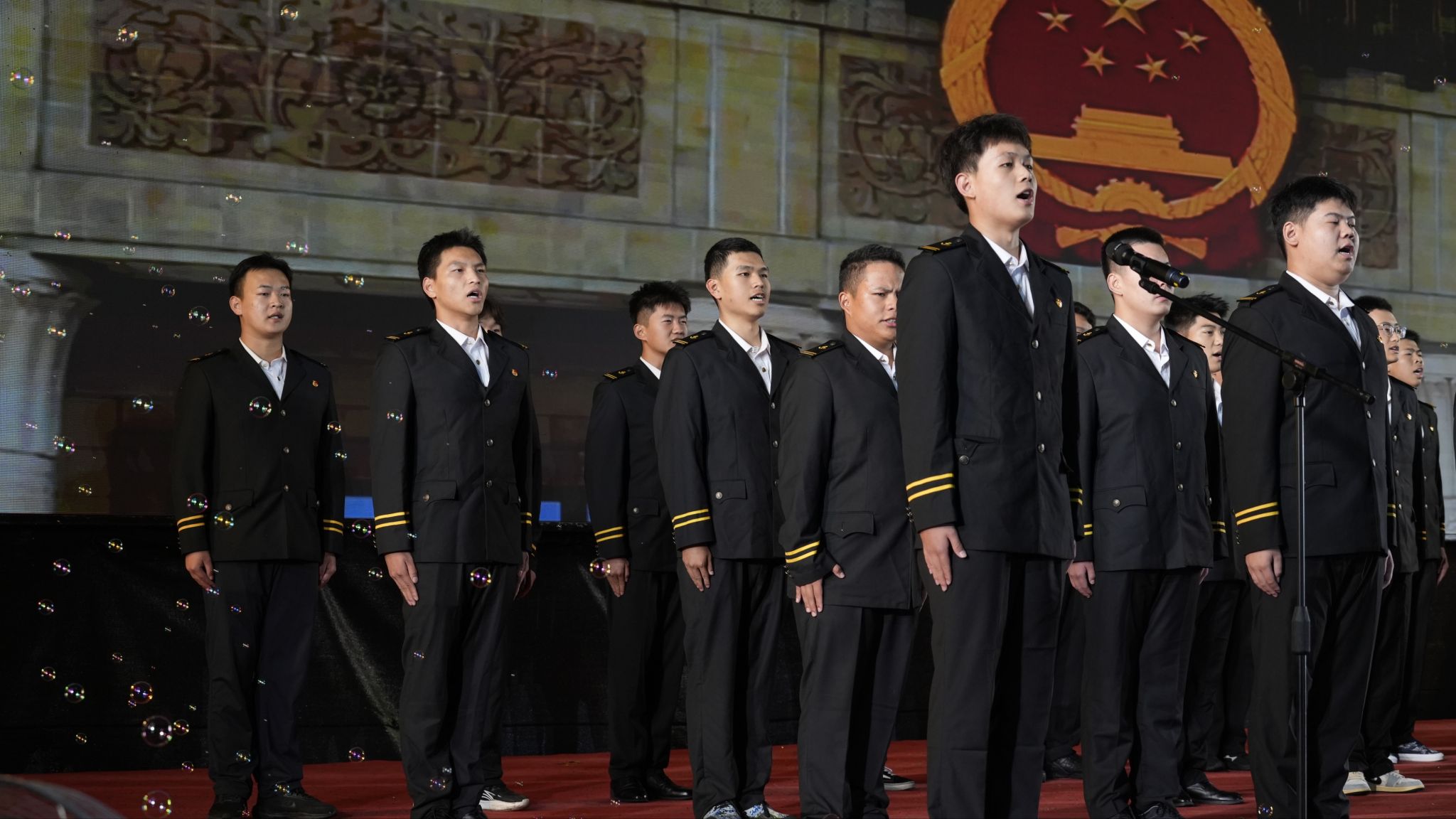 红色舞蹈《党旗飘扬的方向》,以坚定舞姿传递信仰力量;红色舞台剧《觉醒》与军体拳表演,从历史回望到行动致敬,展现青年担当;合唱的《强军战歌》,用豪迈歌声诠释海事学子的热血情怀;民族团结舞蹈《舞乐中华》,则以多元舞姿描绘各族儿女同心筑梦的美好图景。