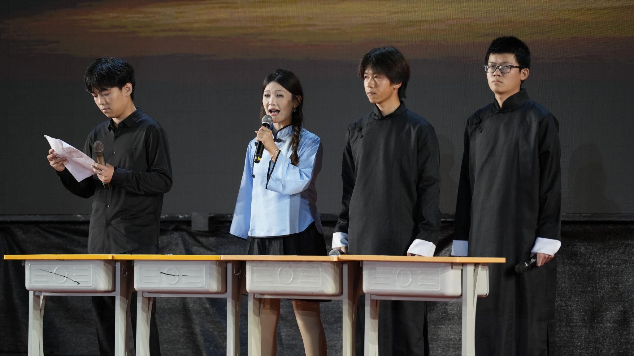 制服秀《启航・霓裳》,将专业风范与优雅身姿完美融合,诠释“崇德尚能、教之有道”的教风;八段锦表演《锦 show八段》,让传统养生智慧焕发青春活力;教师代表带来的朗诵《山海故事》,深情讲述师者育人的温暖篇章,引发全场共鸣。