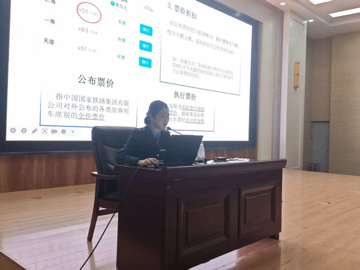 近日,青岛车务段潍坊站专业团队走进山东海事职业学院航空学院,为高速铁路客运服务专业学生开展实践教学,推进校企协同育人与产教融合。