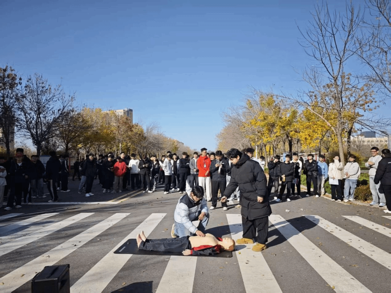 心肺复苏实操环节成为本次演练的“亮点课程”。专业急救人员借助模拟人教具,分步演示判断意识、开放气道、胸外按压、人工呼吸等关键步骤,对动作力度、频率等细节逐一拆解说明。直观的演示、清晰的讲解让围观师生全面掌握急救流程,大家纷纷表示,这些实用技能在突发状况下能为生命救援争取宝贵时间。