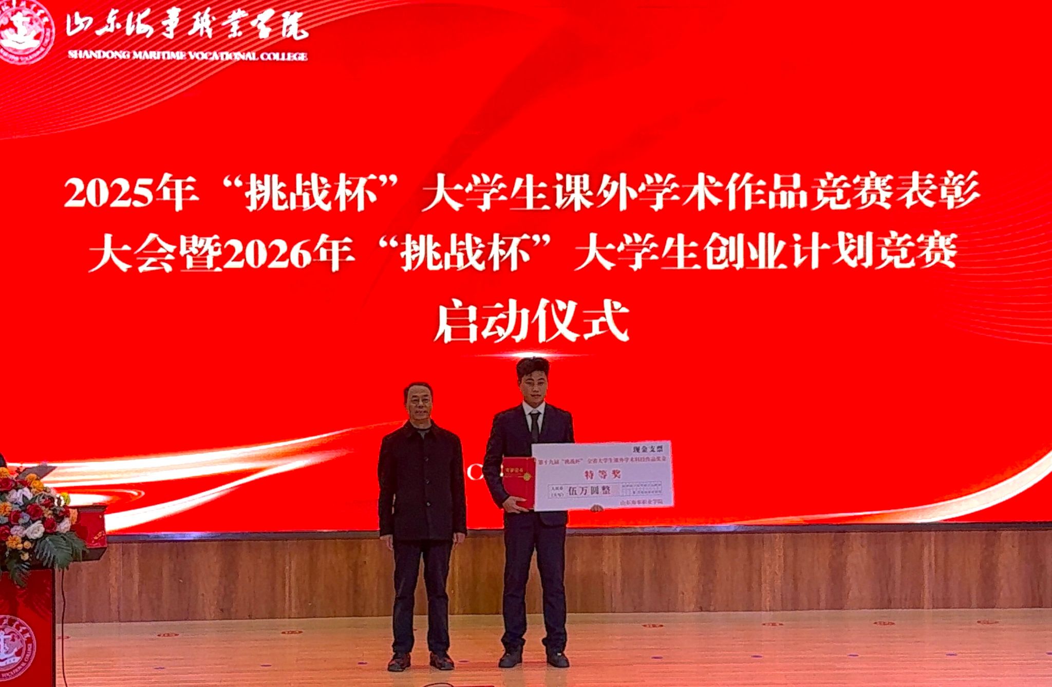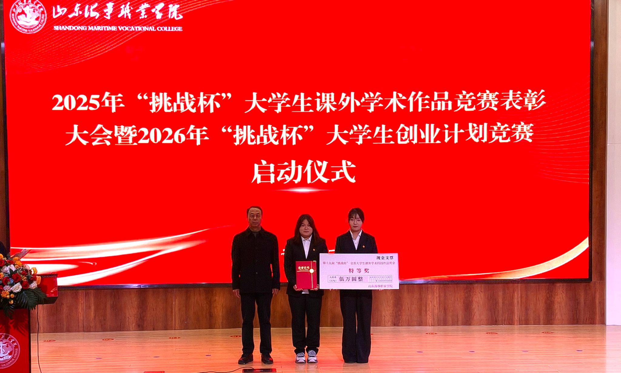 副校长宋志刚为获奖团队依次颁发荣誉证书与奖励支票,既是对获奖团队的祝贺,更是对全校科创力量的激励。