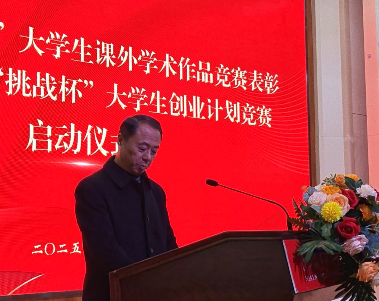 11月13日,学校2025年“挑战杯”大学生课外学术作品竞赛表彰大会暨2026年“挑战杯”大学生创业计划竞赛启动仪式在综合楼报告厅隆重举行。学校副校长宋志刚、学生工作处处长齐万昌、团委书记刁宁及各学院团总支书记出席大会,与全校师生共同见证荣耀时刻,共绘科创育人新蓝图。