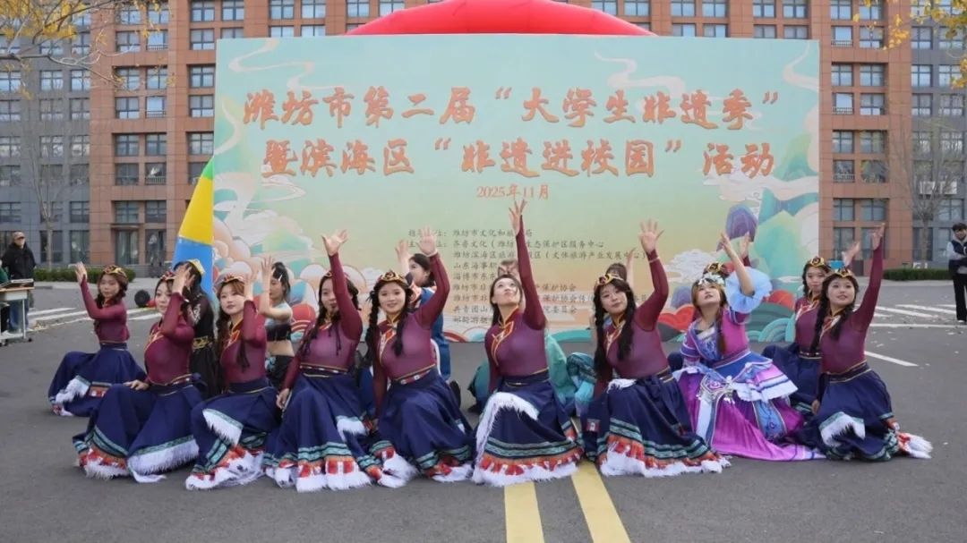 近日,潍坊市第二届“大学生非遗季”暨滨海区“非遗进校园”活动在我校圆满举办。本次活动由潍坊市文化和旅游局、滨海区文体旅游产业发展中心联合主办,我校承办,旨在推动非物质文化遗产走进校园,进一步激发青年学生对传统文化的热爱与传承意识。