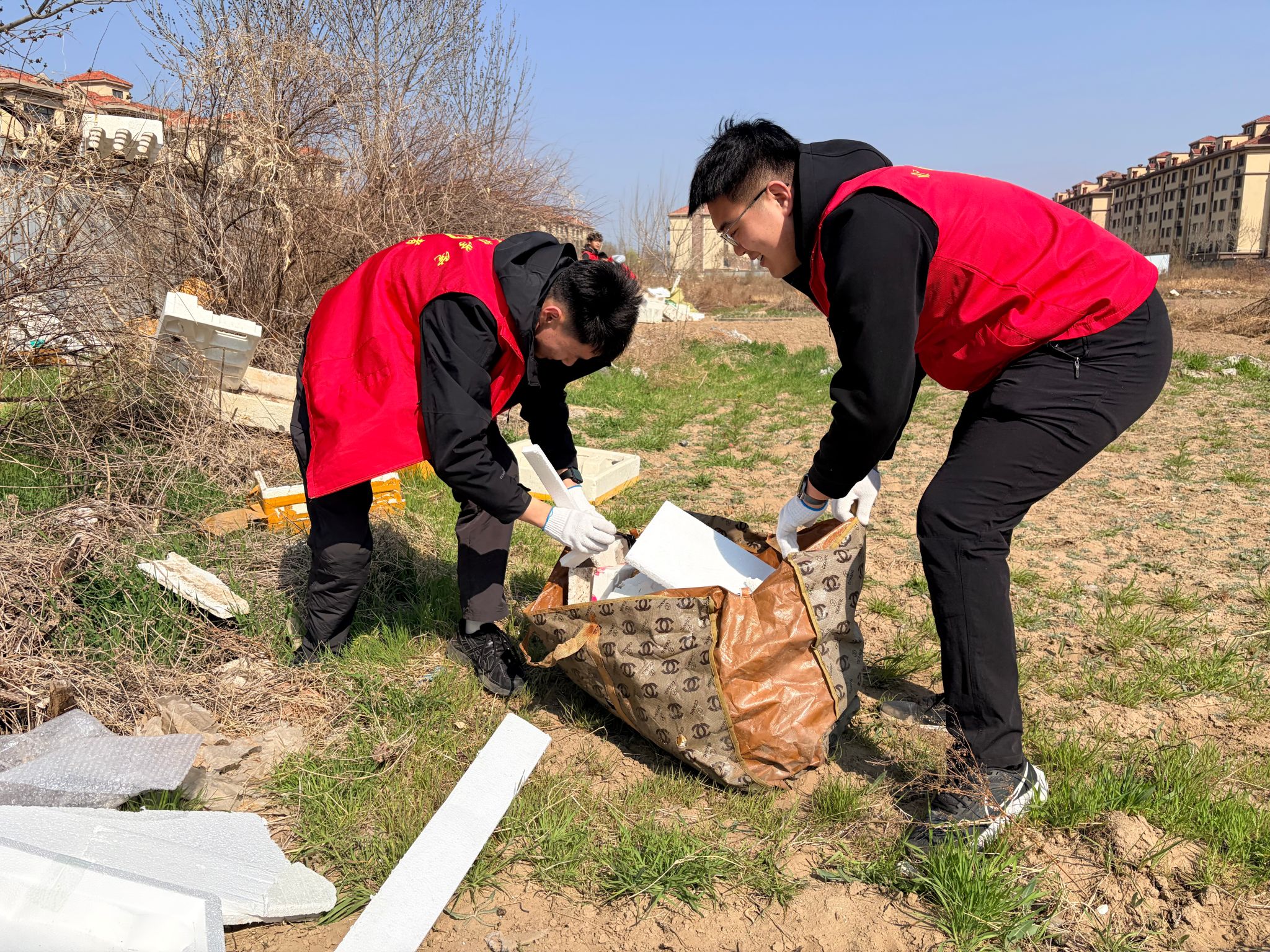 活动现场,志愿者们热情高涨、干劲十足,充分展现了新时代青年大学生的责任与担当。大家分工协作、配合默契,有的用铁锹铲除散落的建筑垃圾,有的用双手捡拾细小杂物,有的将清理后的垃圾分类打包、集中清运,不放过任何一个卫生死角。面对堆积的碎石、废弃建材等较重垃圾,志愿者们不怕脏、不怕累,齐心协力将其搬运至指定垃圾堆放点,用汗水为社区环境“减负”。