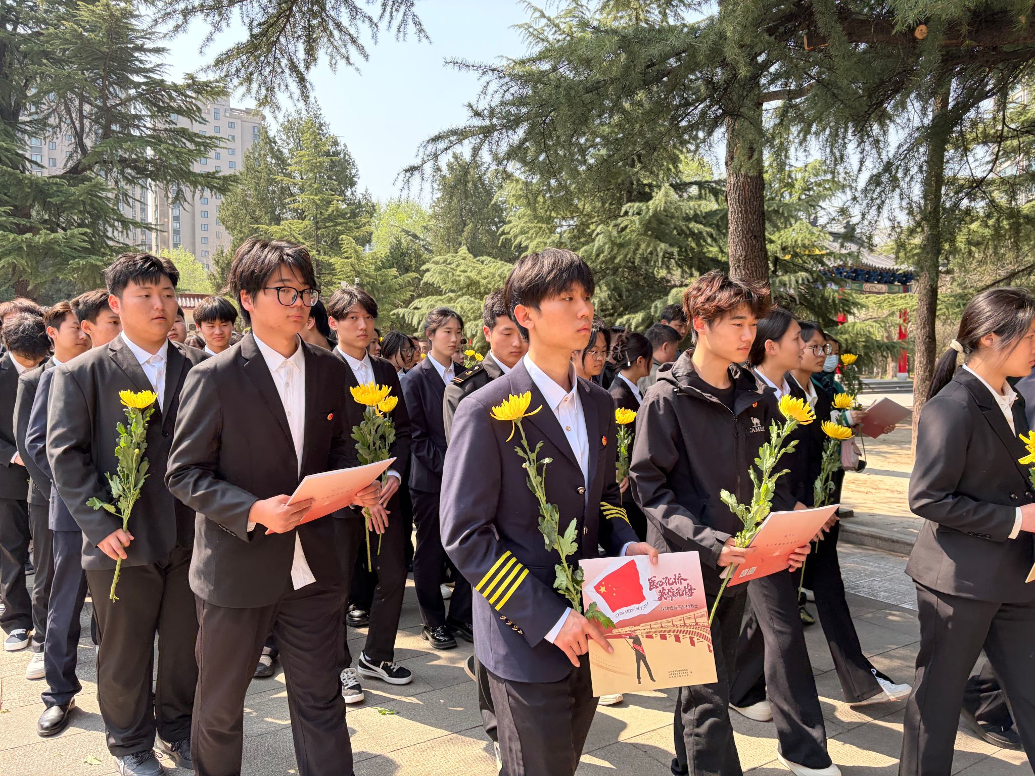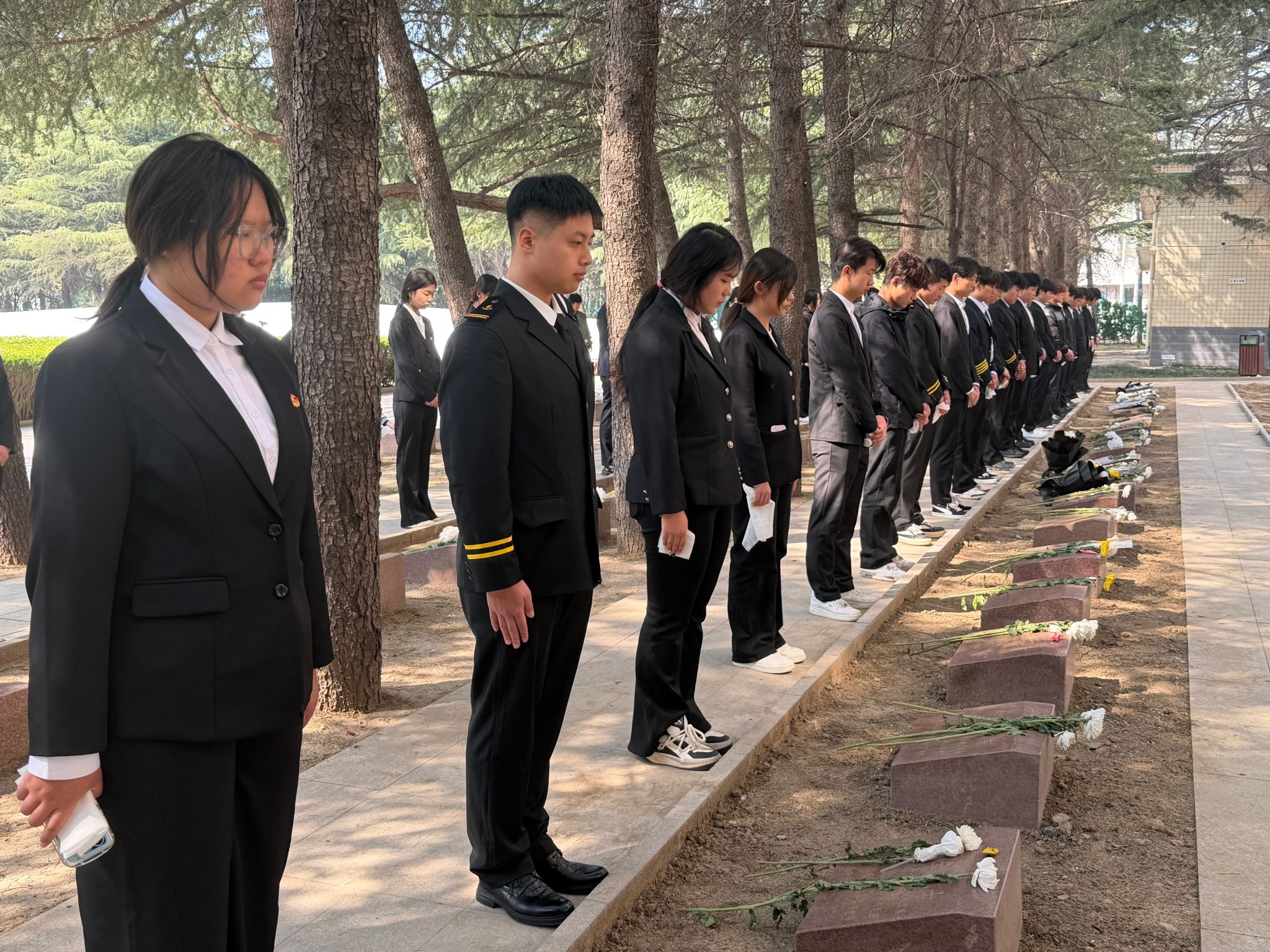 活动现场庄严肃穆,苍松翠柏挺拔肃立,烈士纪念碑巍峨矗立、熠熠生辉。全体“青马学员”身着整齐服装、列队肃立,怀着无比崇敬的心情向烈士纪念碑敬献花圈、鞠躬默哀,深切悼念为民族独立、人民解放和国家富强英勇献身的革命先烈。随后,学员们面向团旗庄严重温入团誓词,铿锵有力的誓言回荡现场,彰显了新时代青年传承先烈遗志、勇担时代使命的坚定决心。