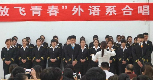 5月7日,学院外语系在2518报告厅举办“放飞青春”主题合唱比赛。大力弘扬五·四精神,推动校园精神文明建设,构建和谐校园,增强学生责任感、使命感、集体荣誉感,展现学生积极向上、朝气蓬勃、奋发向上的精神风貌,促进学生全面发展。