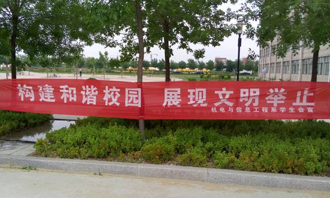 2015年5月28日下午4点20分,由山东海事职业学院机电与信息工程系举办的“构建和谐校园,美化学习环境”活动在校园主干道举行。为了给广大师生提供更和谐、安全的学习环境,加强同学们团结合作意识,为了号召更多学生关注我们的生活环境,提高同学们爱护校园环境的意识。机电系全体学生会成员在王冠伟、张建军老师的带领下进行活动。