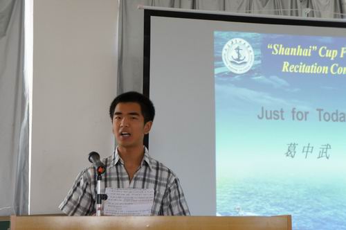 为推动航海类英语教学创新实践,营造良好的校园英语听说氛围,基础部和山海学习社于5月17日下午联合举办了一次别开生面的首届英语朗诵比赛,收到了良好的效果。院领导仉继航等应邀参加活动并担任比赛评委。
