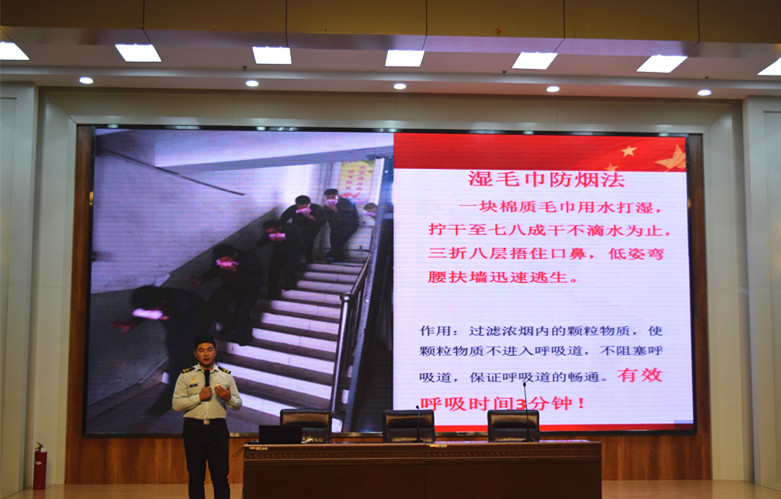 11月22日下午,学院在图书馆报告厅组织开展了学生公寓消防安全知识专题教育学习活动,活动旨在增强学院学生安全意识,提高学生应急自救能力,进一步筑牢校园消防安全防火墙。本次活动特别邀请到了潍坊市防火中心教员朱理鑫为在场学生做了消防安全知识专题讲解,学院学生处副处长吕玉国、安保处副处长孟凡明以及学院学生公寓全体宿舍长参与了本次学习活动。