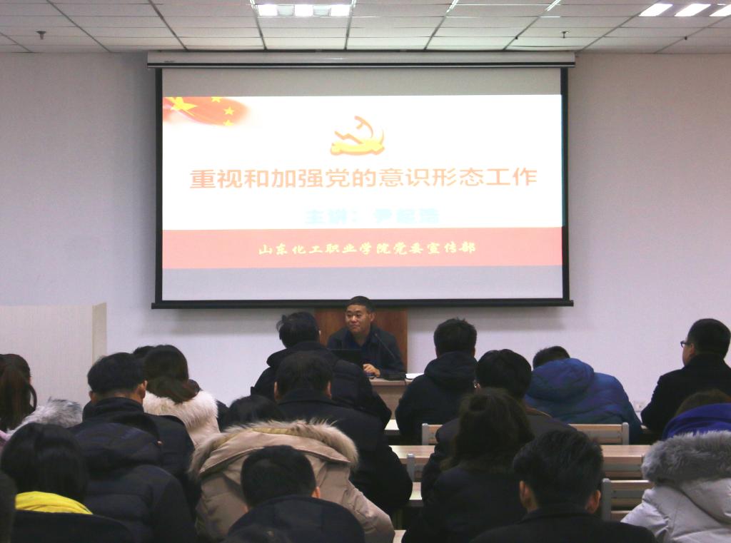 12月13日上午,学院在图书馆第二信息化教室组织开展了意识形态工作专题培训会,旨在全面深化落实中共山东省委教育工委关于高校意识形态工作开展的具体精神指示,在学院层面切实筑牢党员干部意识形态工作思想防线。本次培训会特别邀请山东化工职业学院党委宣传部部长尹起浩作报告,学院宣传统战部副部长王德帅主持会议,学院各部门、二级学院意识形态工作负责人参加培训。