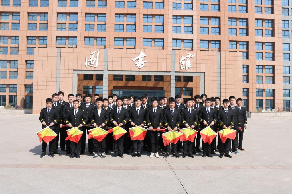 春日的暖阳照耀着生机勃勃的校园,航海学子们身着学院制服,佩戴航海肩章,挥舞起“红黄相间”的手旗,用国际航海旗语打出了“保卫蓝色国土,维护海洋权益;发展蓝色科技,振兴海洋文化;人海和谐,兴我家邦”的字样,以海员特有的方式来迎接“国际航海日”的到来。作为世界各国海军的通用语言,旗语不仅是航海技术专业学生的必修课,也是该专业的特色教学项目。在国际航海日来临之际,作为学院航海类专业的学生和未来航行在蔚蓝海面的大海之子,学院学子们用旗语这种独特方式来表达内心对蔚蓝海面的向往和对航海事业的热爱。