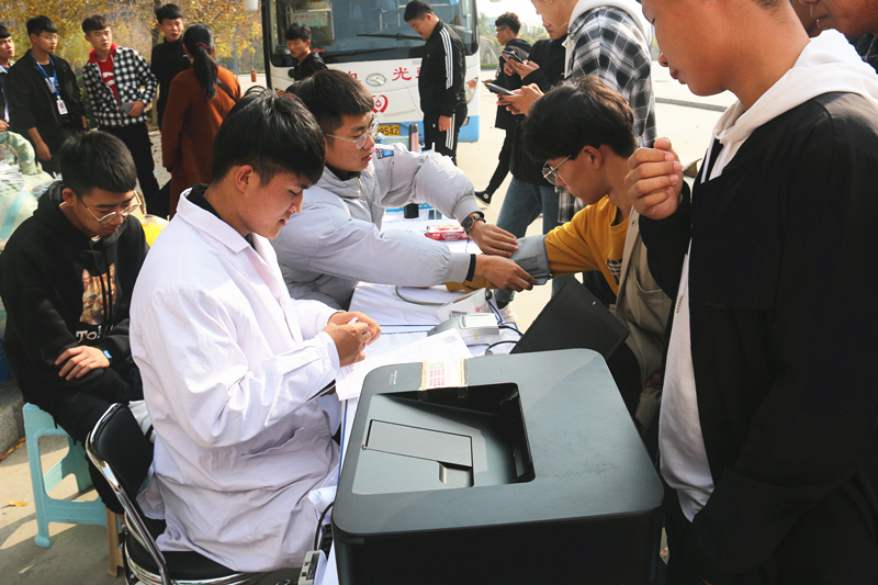 经过前期主题讲座、张贴海报以及发放宣传册等多种形式的宣传,此次献血活动吸引了广大师生的踊跃参与,自愿为社会奉献出了自己的一份爱心。上午九点半献血车刚到,便有学生陆陆续续在二、三号教学楼间甬路排起了长队,整个献血活动中大家热情高涨,秋风萧瑟也阻挡不了大家献爱心的步伐。
