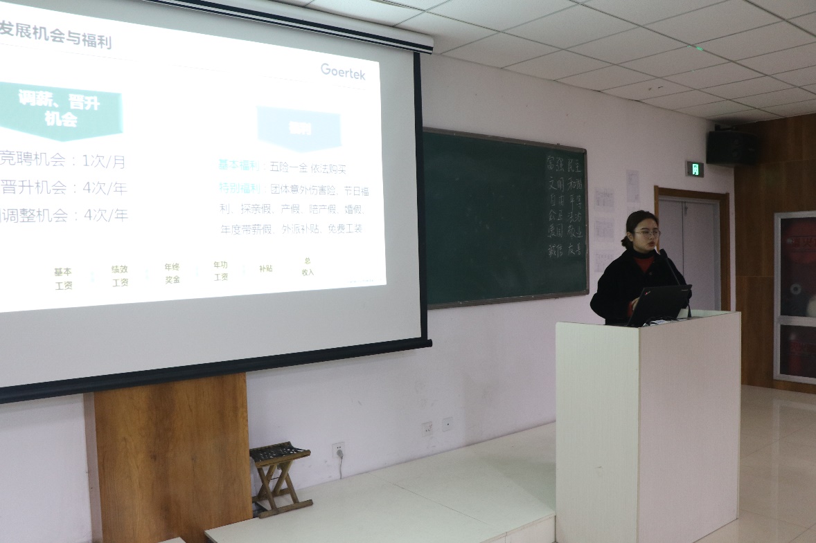 歌尔股份有限公司代表正在为毕业生们讲解公司员工发展机会与福利