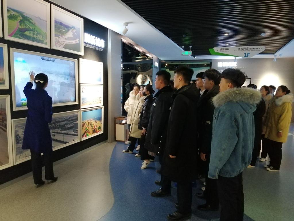 航空学院的党员和入党积极分子,带着满腔的爱国热情来到滨海城市艺术中心,感受滨海海洋城市文化中心的魅力、接受爱国主义教育。师生们穿过充斥红色文化气息的“渤海走廊”,走进如梦似幻的海洋风格通道中,站在巨大的立体电子屏幕前,认真观看了展示潍坊滨海建设成就和未来城市规划的5D宣传片,滨海瑰丽多姿的海洋地域文化和拼搏不息的红色城市精神,给师生们带来了一次震撼内心的体验。滨海城市展览馆,以海洋文化为特色,将"圆梦滨海,展望未来"的主题巧妙融入其中。让参观学习的师生们了解了滨海红色文化历史,回顾了民族解放事业的烽火征程和不朽功勋,并激励新时代青年学子树立远大理想抱负,用砥砺前行的奋进精神绽放青春光芒。