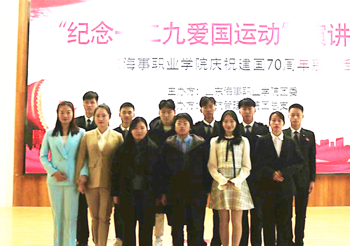 12月12日下午,由校团委主办,港航管理学院团总支承办的,纪念“一二·九”爱国运动主题演讲比赛在图书馆报告厅举行。本次比赛由团委书记李雪、港航管理学院院长助理程美旺以及各二级学院团总支书记担任评委。选手围绕“一二·九”爱国主义运动主题展开精彩演讲。最终,来自机电与信息工程学院的盛桂萌荣获一等奖,来自航空学院的丁露露和来自五年制大专学院的白国玉获得二等奖,港航管理学院齐晓龙、航海学院李哲怡、航空学院田明琦荣获三等奖。