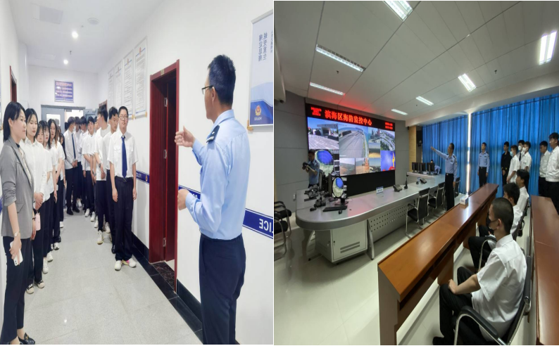 第一站来到了潍坊市海岸警察支队大家洼派出所,警官跟大家详细讲解了派出所30年的发展历程中形成的“红柳精神”。珍贵的历史瞬间、物品展览、荣誉墙都承载着他们的艰辛与责任,体现着他们对于党和人民的无私奉献!第二站来到的是潍坊市海岸警察支队水上派出所,在这里大家学习了所里的党建文化,参观了警官们平时工作、学习和锻炼的地方。看到警官们在忙碌之余还能把内务收拾的井井有条,并不断鞭策自己不落下体能训练,使同学们都深受鼓舞。