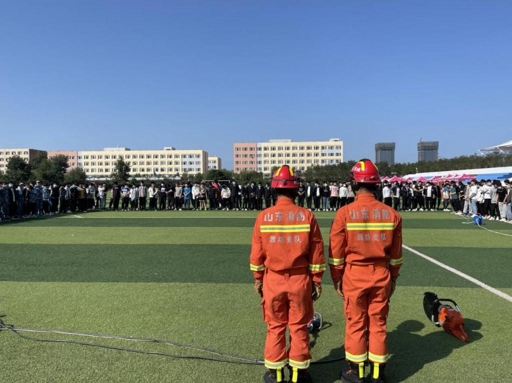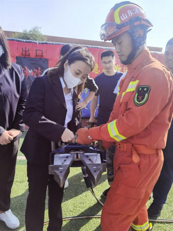 活动中,消防大队董教官为全体师生讲解了在火灾发生时逃生自救的技巧和注意事项,消防指战员向学生们展示了部分救援装备,教官讲解过程中,同学们都表现出了强烈的好奇心,不时的提出问题。雪狼救援队教官演示心肺复苏和人工呼吸的方法,教同学们在危急关头如何救助他人。随后,在模拟高楼起火逃生环节时,同学们有序排队进入消防应急疏散逃生模拟仓,在模拟仓中通过逼真的火灾场景,真实的让大家感受到火灾现场的震撼,体验紧急情况下如何逃离火场,以及逃离时的注意事项等。