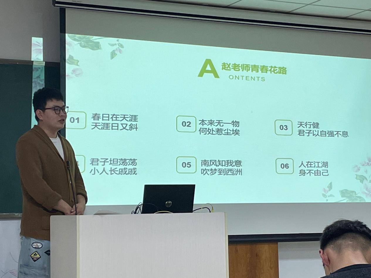 赵泽政老师从自己大学期间两次独行西藏和一次厦门游的经历说起,和同学们分享了自己的青春足迹和青春梦想,用自己的青春之火点燃同学们的青春激情,启迪同学们不能在人生最美好的华年里,整日浑浑噩噩无所事事,要确立远大理想和抱负,不要被时代所淘汰。党支部书记、院长马云芹到会听取了讲座。她用习主席的 “青春是用来奋斗的” 话鼓励同学们,抓住目前正在进行的“四史”学习教育活动,树立正确的世界观、人生观和价值观,珍惜生命,珍惜青春,不负时代,不负韶华,努力学习知识,掌握本领,不负党和人民的殷切期望。