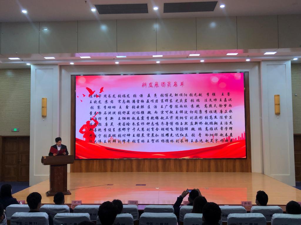 12月14日下午,我校在图书馆报告厅举行2021年新团员入团仪式。学校副校长仉继航出席仪式并做发言,团委副书记郑晓龙,各二级学院团总支书记及2021年新团员代表参加仪式。