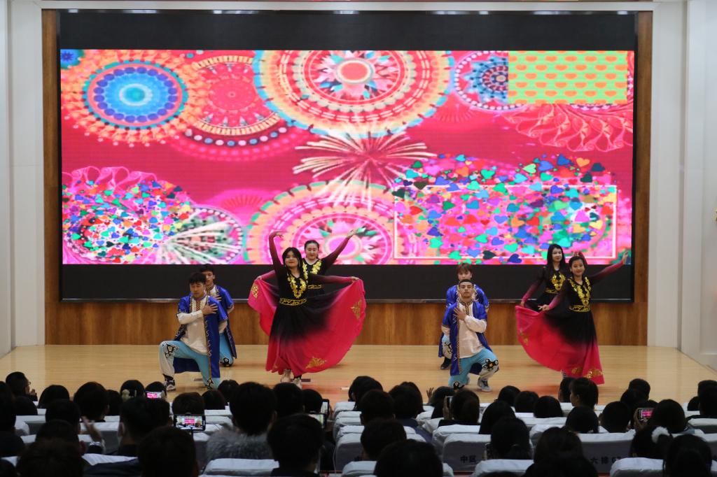 元旦文艺汇演以充满中国民俗特色的舞狮表演拉开帷幕。整场表演流行与古典兼具,温情与火热并举,节目种类形式多样,精彩纷呈。优雅多姿的少数民族舞蹈、铿锵有力的诗歌朗诵、婉转悠扬的民族乐器演奏,众多节目共同呈现出了一场视听盛典。伴随着独具航海特色、展示航海文化精髓的《航海旗语》表演,本次元旦文艺汇演圆满落下帷幕。