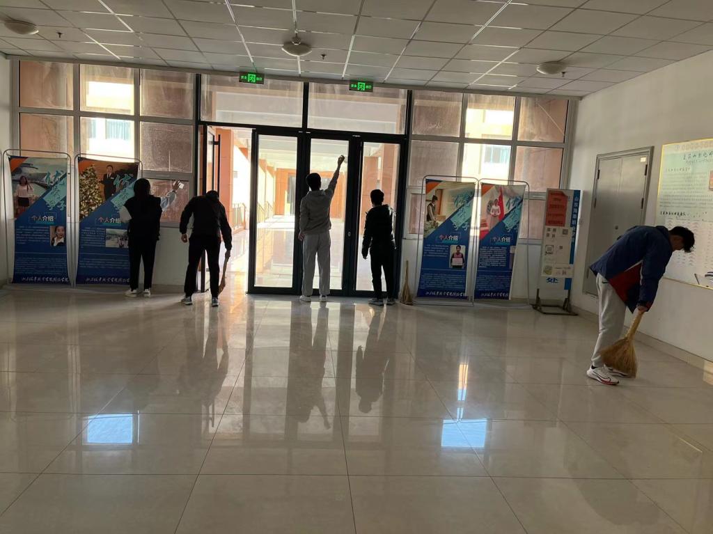 电商学院志愿者们自发承担起了打扫学校4个教学楼公共区域楼梯和玻璃的责任。大二的学长学姐带领着大一的学弟学妹,在这个特殊的日子,将这奉献的、无私的、高尚的雷锋精神传承下去。