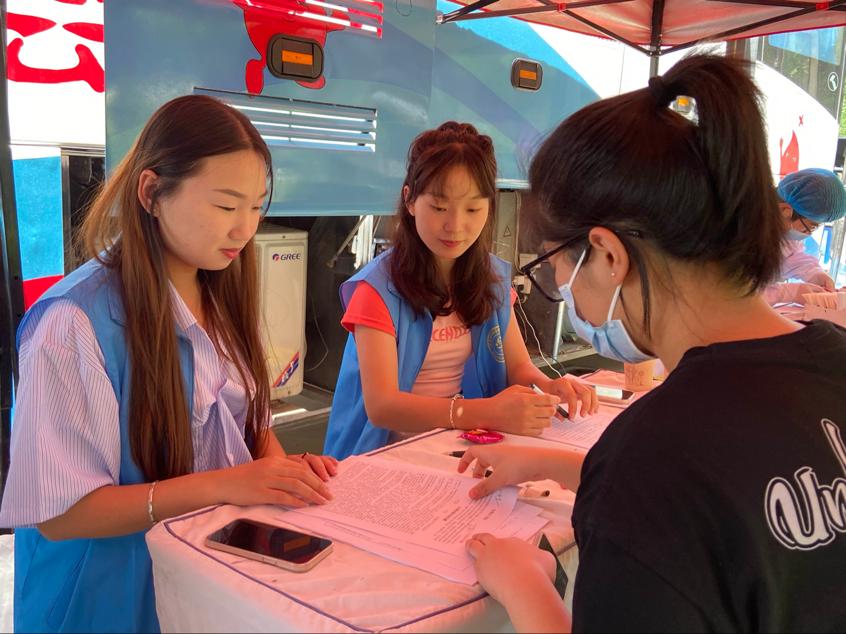 近日,我校团委联合潍坊市中心血站组织开展大学生爱心献血活动。活动现场,前来献血的学生络绎不绝,秩序井然的排队参加无偿献血。志愿者们在现场引导献血者进行登记填表、健康监测、血压测量等。医护人员用专业的手法为献血者消毒、抽血、止血,并且还有专门的医护人员进行贴心的问候,疏解献血者的紧张情绪。献血结束后,志愿者为献血者送上爱心礼品并分发献血证,同时询问并观察献血者身体恢复情况。