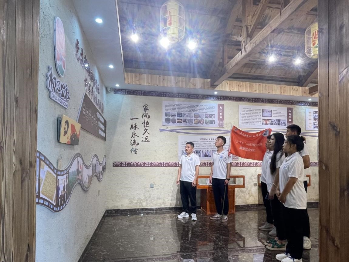 “如果不是那一面高举的红旗,怎会有今天壮丽锦绣的山河……” 启航三下乡志愿服务队全体队员在褚家坡村孙书记的陪同下,怀着无比崇敬的心情参观了褚家坡村红色村史馆。褚家坡村是革命年代“莒沂边工委”的发源地。近年来,村里为铭记革命历史,弘扬爱国精神,建设了红色村史馆,打造“褚心公社”,以红色文化精神激发初心使命感。一个个红色革命故事、一件件珍贵的展品向我们生动展现了那个激情澎湃的年代,志愿者们被深深地感动和震撼,深知幸福生活来之不易,光辉的历史需要铭记,革命的火种需要传承。