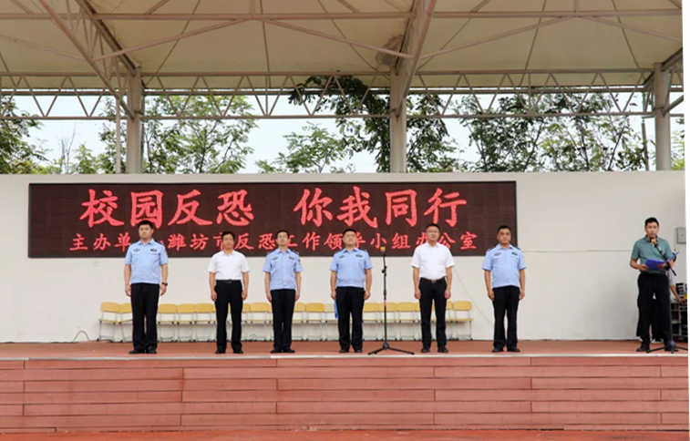 近日,由潍坊市滨海区公安分局举办的“校园反恐·你我同行”主题宣传活动在我校举行。潍坊市、滨海区两级反恐办有关负责同志,学校党委副书记、执行校长徐立清以及师生代表200余人参加活动。