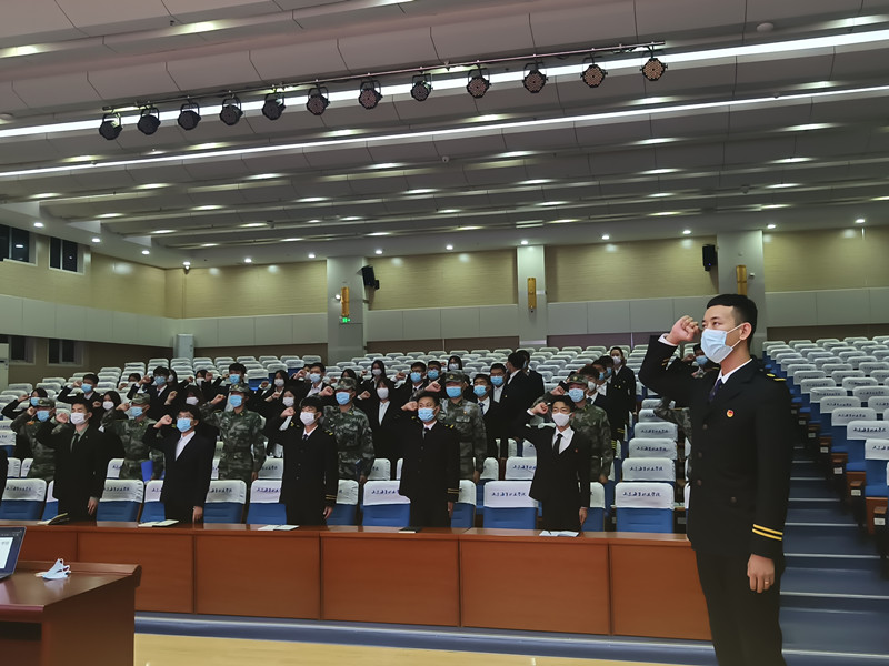 仉校长讲话结束后,学校第十二届学生会主席杨浩杰带领全体同学进行宣誓,仪式结束后,学生处副处长王冠伟以“榜样的力量”为主题开展集中授课。