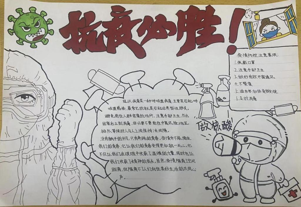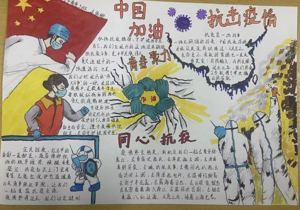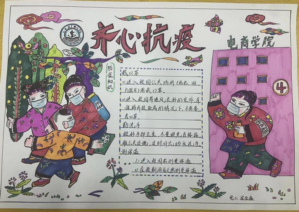 近日,为加强学生防疫意识、提高学生防疫能力、丰富学生文化生活,电商学院组织开展了以“齐心协力抗疫情,青春聚力有担当”为主题的手抄报绘制活动。