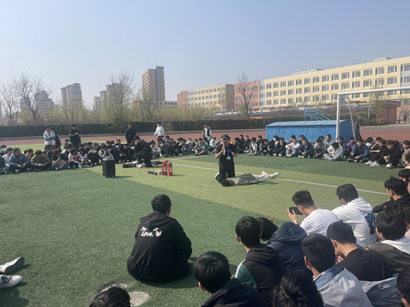 一阵急促的警报声拉开了“学生安全疏散演练”活动的帷幕。听到警报声,各位辅导员立即到达指定位置,指导学生快速疏散。学生们弯着腰、用湿毛巾捂住口鼻,沿着逃生路线快速前进,有序撤离到学校操场的安全区域,各班班长清点人数,并层层向上汇报。演练结束后,学院团总支书记鞠凯老师在点评中指出,整个应急演练活动规范、有序、紧凑、安全、高效,大家临危不乱,组织有序,逃生时没有发生拥挤、踩踏和碰伤的事故。随后,在专业人员的指导下,师生一同学习了心肺复苏术以及灭火器的正确使用方法。