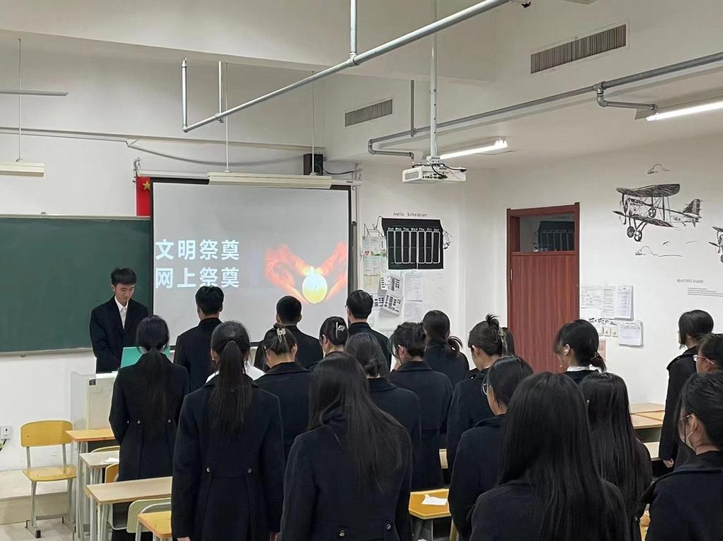 在讲述红色故事的过程中,同学们纷纷登台,娓娓道来,深切讲述烈士们的光荣事迹,一篇篇故事翻开一幅幅生动的革命历史画卷。讲述中,同学们有感而发,表示要珍惜先烈用热血换来的今天,肩负使命,砥砺前行;“清明观影”活动中,团总支组织同学们观看了红色电影《长津湖》。影片中国人民志愿军的钢铁意志和英勇无畏的战斗精神深深地震撼了每一位同学的心灵;同时,学院还组织同学们积极参与了“告慰先烈誓词”评选,通过精选出的优秀誓词开展宣誓活动,在宏伟的国歌声中,辅导员和学生代表带领学生们共同起肃立并庄严宣誓:“我立志继承先烈们的遗志,奋斗未完成的事业;紧跟党走,把壮丽山河建设的更加美好;顽强拼搏,让苦难的宫殿在笑声中动摇;团结一致,掀起民族富强的巨浪!先烈们,此时我为你们骄傲,他朝你们为我自豪!”清明节期间,航空学院派还出部分学生代表参加了学校组织的“缅怀卫海英烈,建设海洋强国”活动,通过默哀、献花、旗语表演等方式告慰英魂,表达对英烈们的哀思。