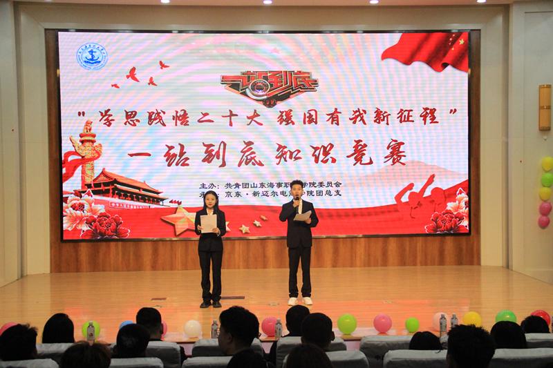 为全面学习宣传贯彻党的二十大精神,积极营造“以赛促学,以学促行,比学赶超”的浓厚氛围,推动学习宣传贯彻党的二十大精神走深走实,电商学院不断丰富学习方式,创新学习载体,于4月24日在图书馆报告厅举办“学思践悟二十大,强国有我新征程”一站到底知识竞赛活动。