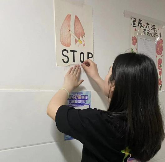 学院成立禁烟宣传监督小组,监督全院禁烟工作,在宿舍、教学楼等醒目的地方张贴海报、宣传标语,对学生展吸烟有害健康的宣传教育,营造浓厚的宣传氛围,在潜移默化中提高学生的禁烟意识。