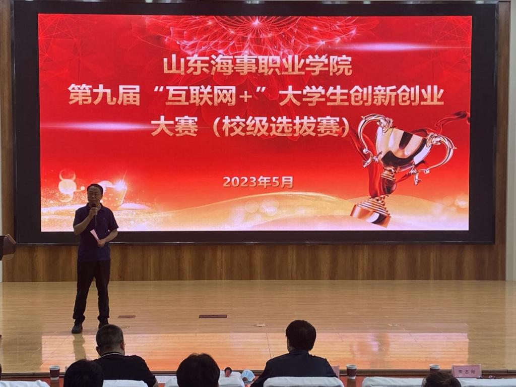 近日,我校第九届“互联网+”大学生创新创业大赛校级选拔赛在学校图书馆报告厅举行。副校长宋志刚,各二级学院创新创业工作人员出席,晋级校赛项目组师生代表参加。大赛特邀潍坊创业大学副校长吴会民、“互联网+”大学生创新创业大赛评审专家隋松担任评委。