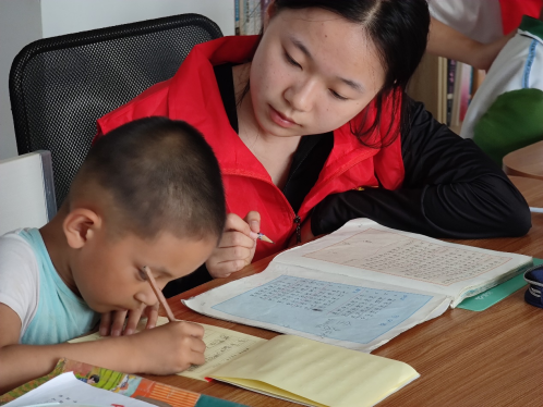 在活动过程中,志愿者根据每位儿童自身的情况、特点及需求,进行一对一的专项辅导,为儿童的学习、生活和身心健康发展营造良好的氛围。