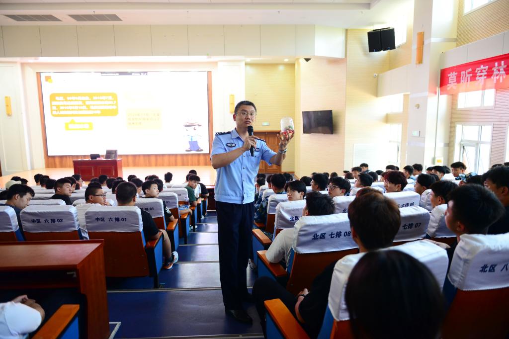 为深入贯彻落实党的二十大精神,加强对我校学生的反诈禁毒宣传预防教育,提高学生安全防范和自我保护能力,9月7日,我校邀请大学园派出所综合指挥室主任朱英杰、禁毒大队综合科副科长王东东在图书馆报告厅为我校学生做禁毒与反诈知识讲座,2023级新生代表共450余人参加讲座。