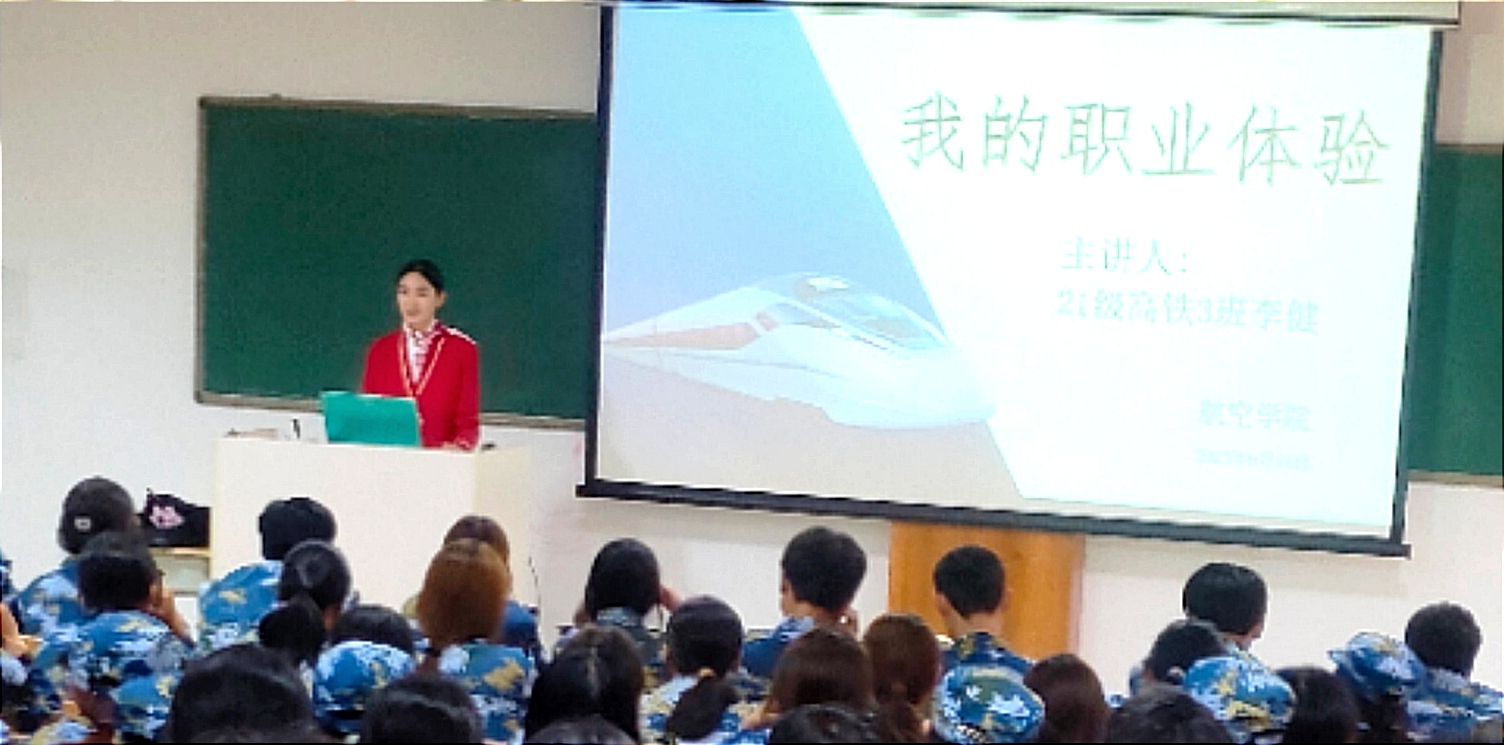 近日,为加深学生职业认知,坚定职业信念,更好地提高职业素养,航空学院充分挖掘资源,为大一新生举办了一场职业体验分享交流会,邀请在就业和实习岗位上表现突出的优秀学生——目前就职于济南铁路局的2021级实习生李健回校为在校生分享职业体验,现身说法,积极引导新生树立正确的就业观,分享会取得了积极效果。