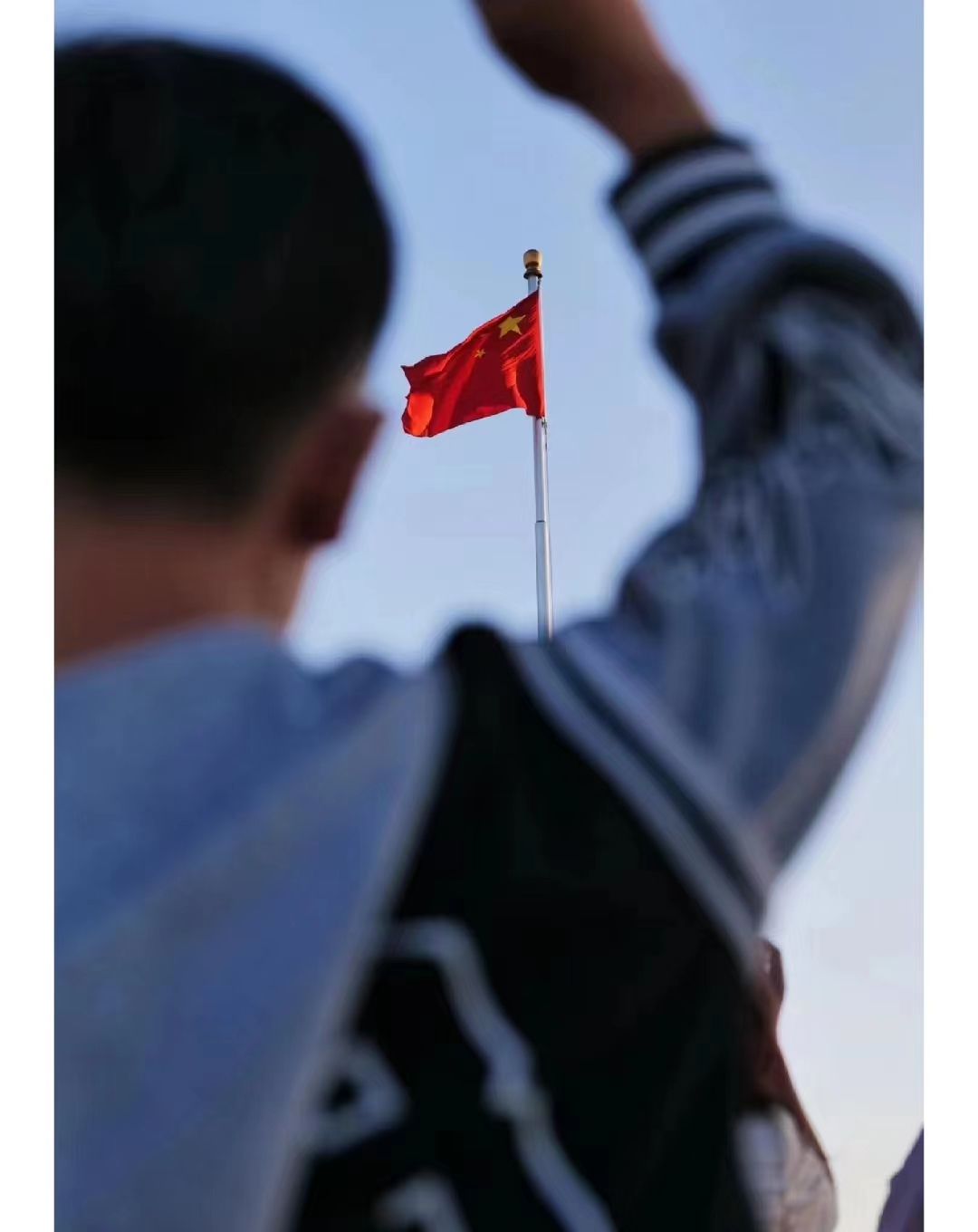 活动中,同学们高举小红旗,用最灿烂的笑容祝福祖国。一幅幅国旗合影,在国旗下定格,在国旗下绽放,展示了青年学子澎湃激扬的爱国热情与昂扬向上的精神风貌。