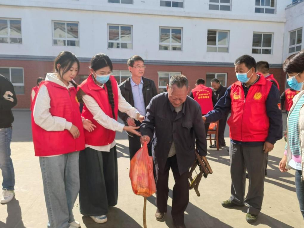 活动中,健康管理学院副书记田兴红向老人们致以节日的问候,带领学生们一同与老人们话家常,详细了解老人们身体状况和生活所需,同时为老人们送上了各类水果、牛奶等生活用品,为老人们送去满满的关怀。
