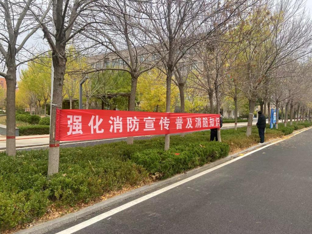 鲜艳醒目的横幅在校园形成了一道道独特而亮丽的风景线,宣传横幅用通俗易懂的口号提示师生们关注消防安全,增强消防意识,为消防宣传月活动营造良好的宣传氛围。