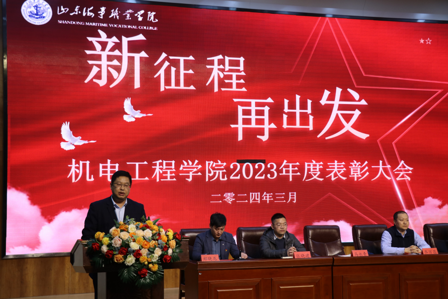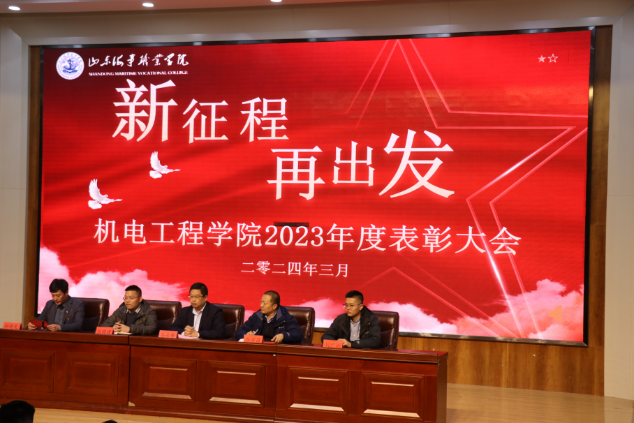 3月7日下午,机电工程学院在报告厅举行2023年度优秀学生表彰大会,对过去一年表现突出的集体和个人给予表彰,激励学生们爱国荣校、刻苦学习、勇于创新、勤于实践,在新的一年中取得更好成绩。机电工程学院院长马永青、机电工程学院党总支书记齐万昌、机电工程学院党总支副书记郑晓龙、机电工程学院院长助理张晓建以及机电工程学院全体教职工出席大会。