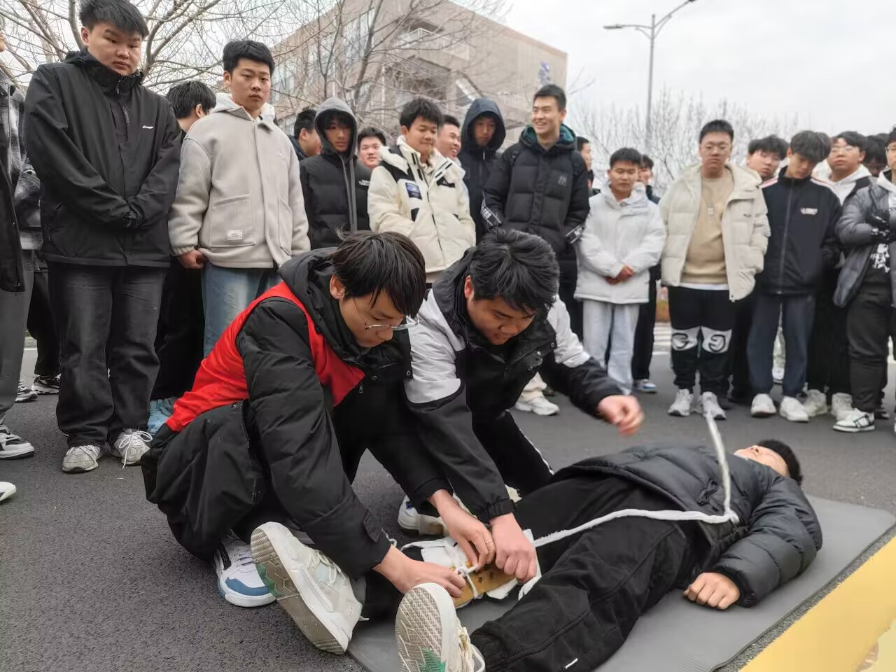 本次活动旨在提高全校师生的安全意识和基本急救技能,增强在紧急情况下的自救和互救能力,活动过程包含了心肺复苏术、止血与包扎、骨折的固定和伤员搬运等基本安全知识讲解、演示和培训。志愿服务者们专业且耐心的为大家讲解了急救基础知识,演示了操作要领。此外,活动现场还设置了互动环节,让学生们亲自动手实践,在掌握理论知识的同时提高实际操作能力。